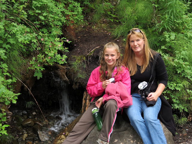 Click on the video to see and hear the falls. If you watch carefully, about half way (6 seconds), you will see a salmon leap. (Sorry, video upload will have to wait for a better connection.)